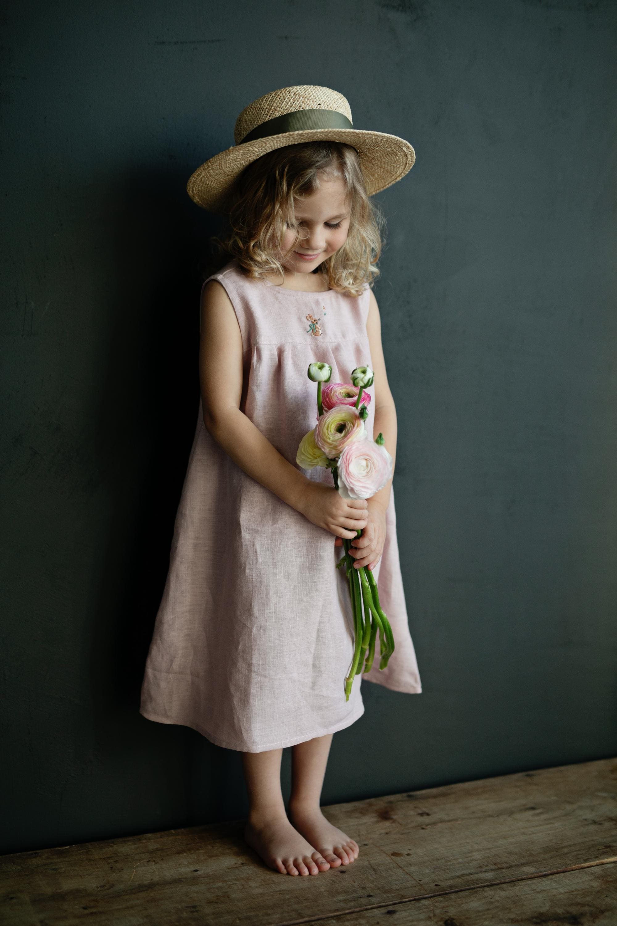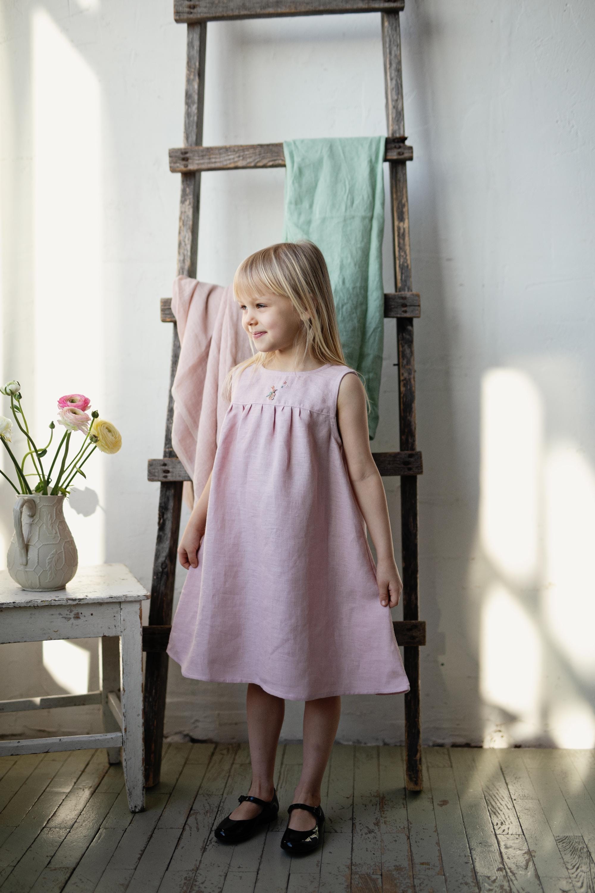 Baby Pink Violet Linen Dress
