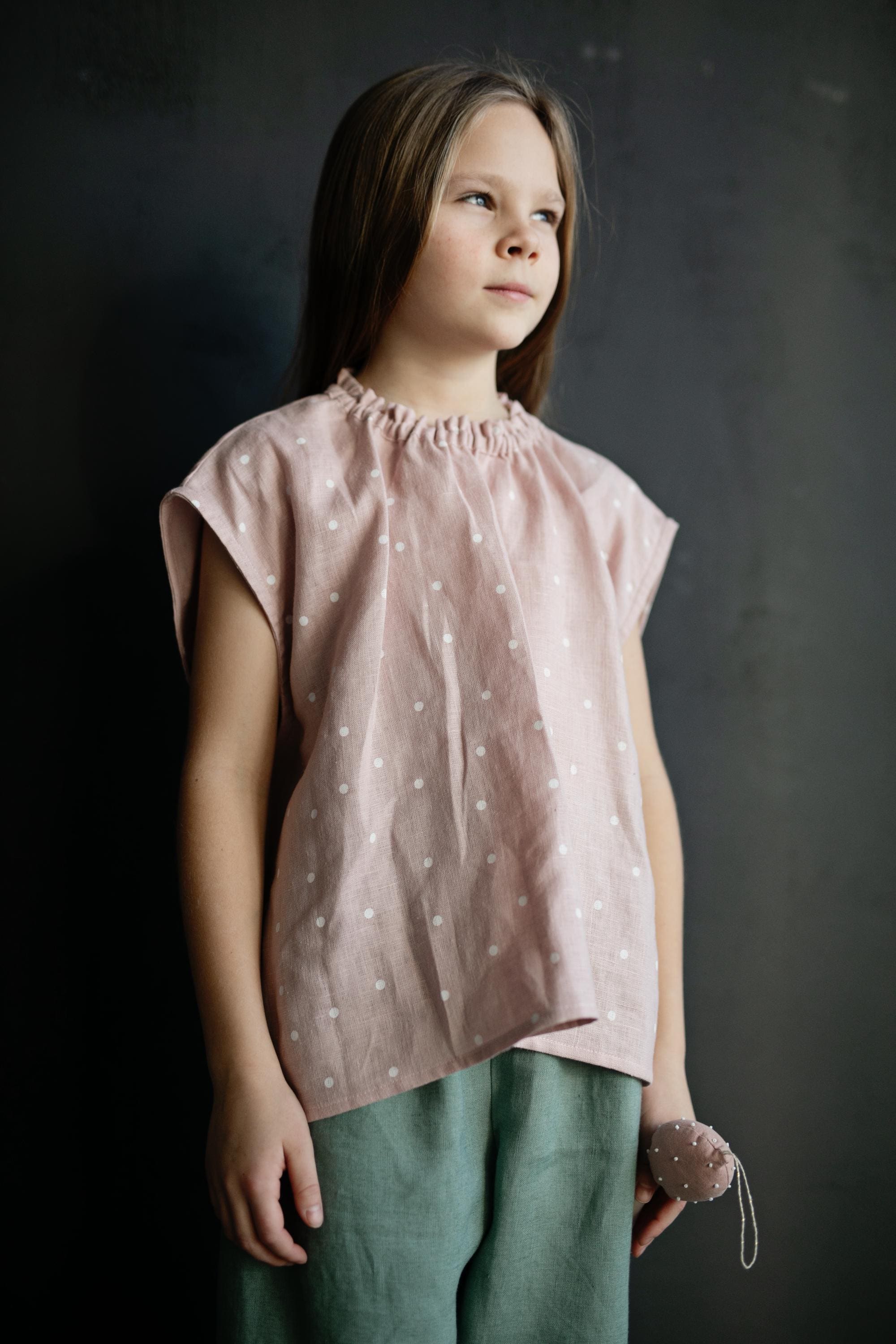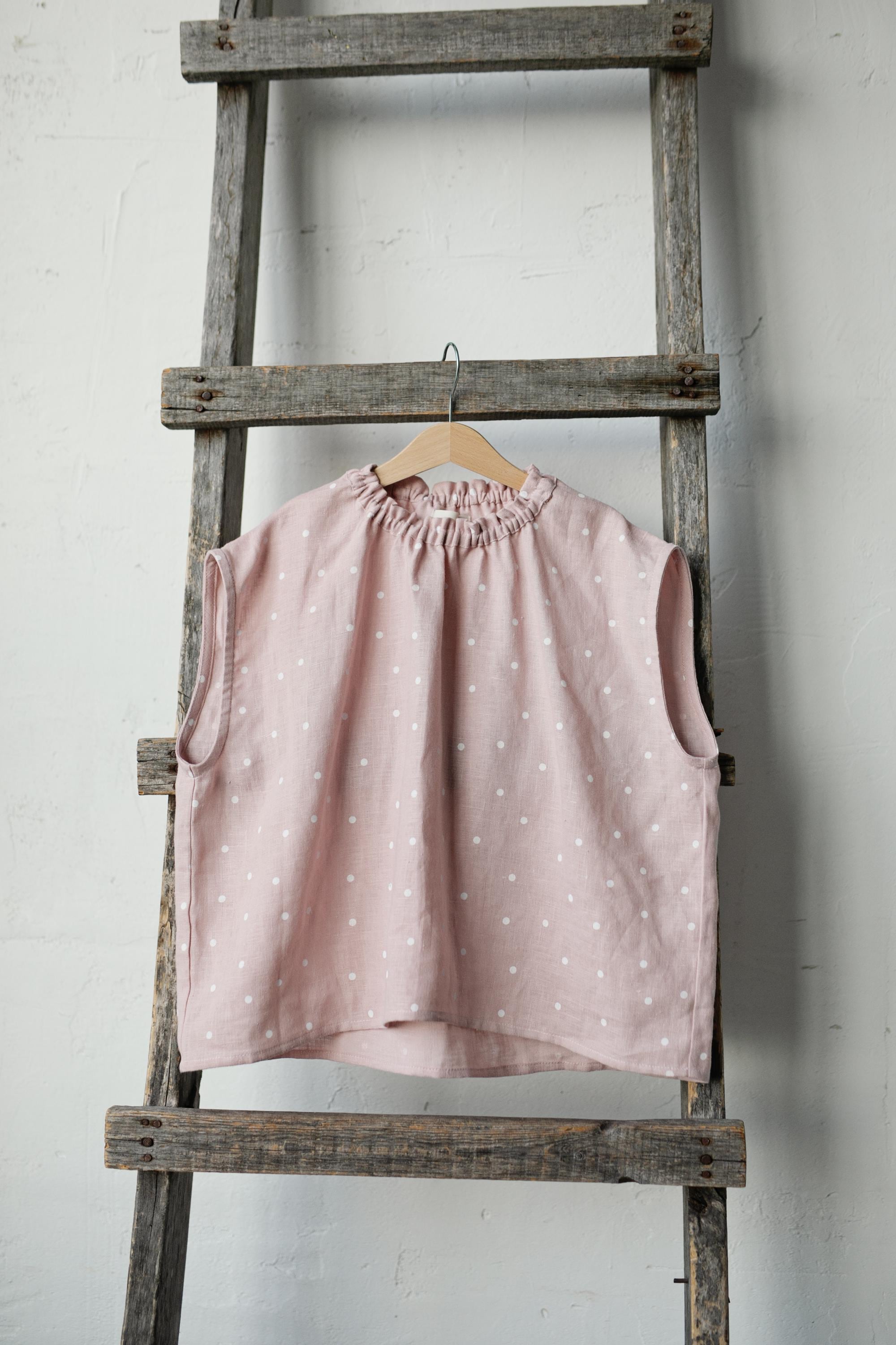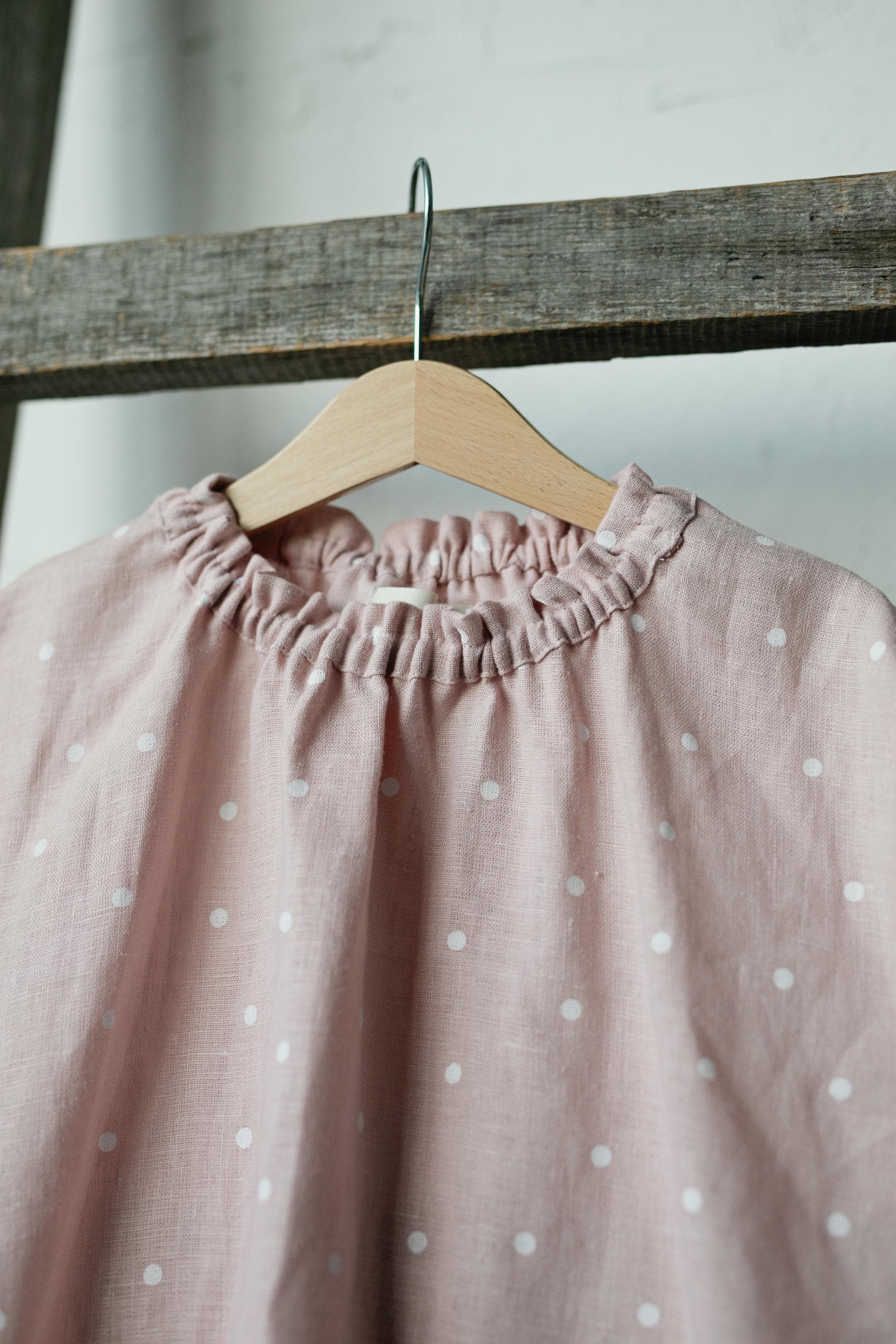 Pink Polka Dot Ruffle Linen Shirt