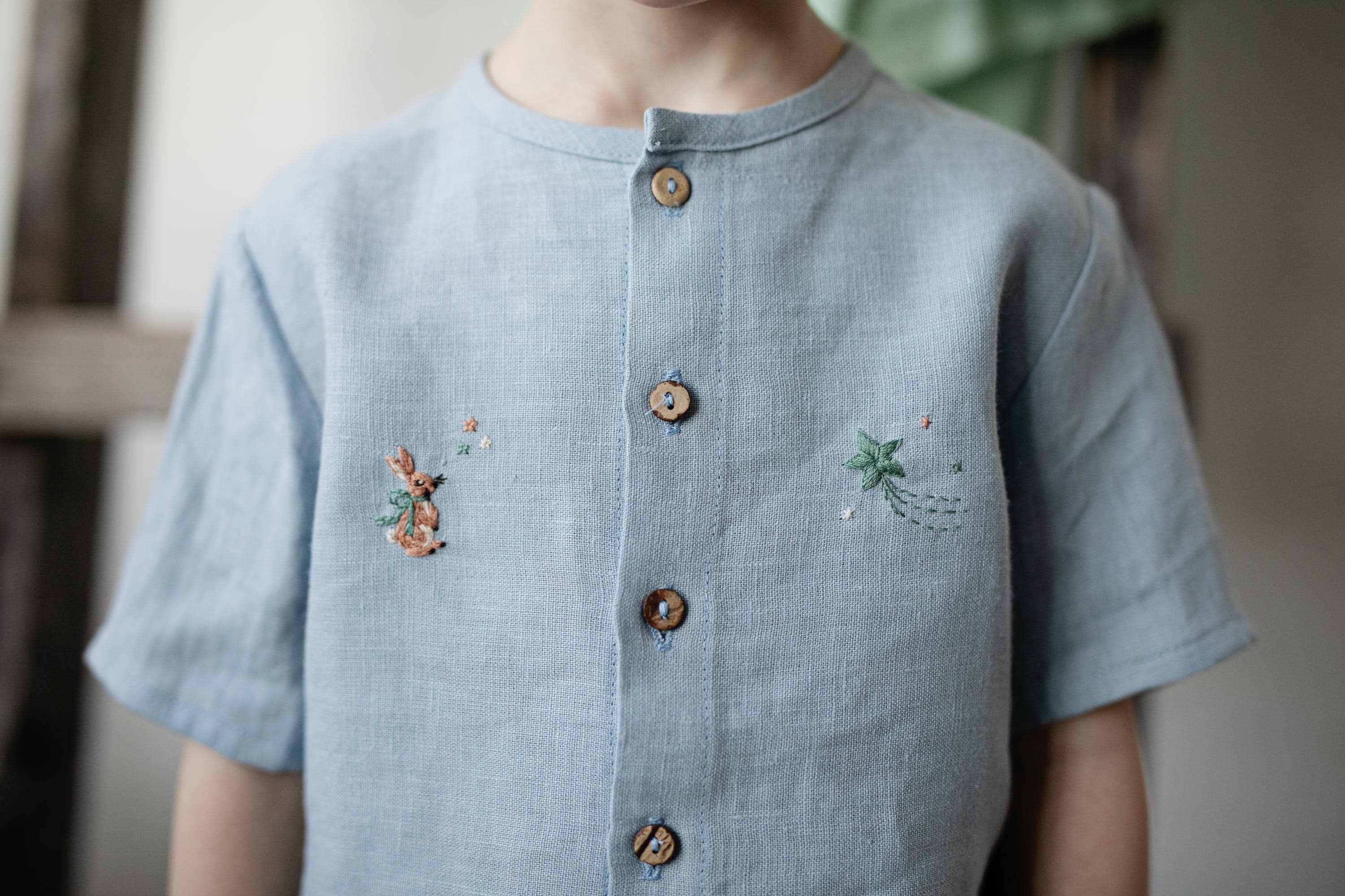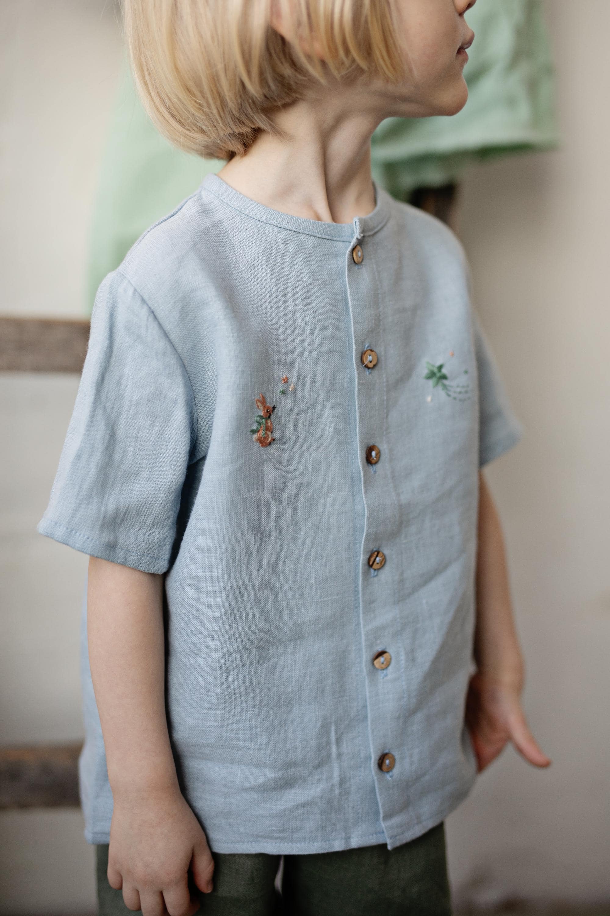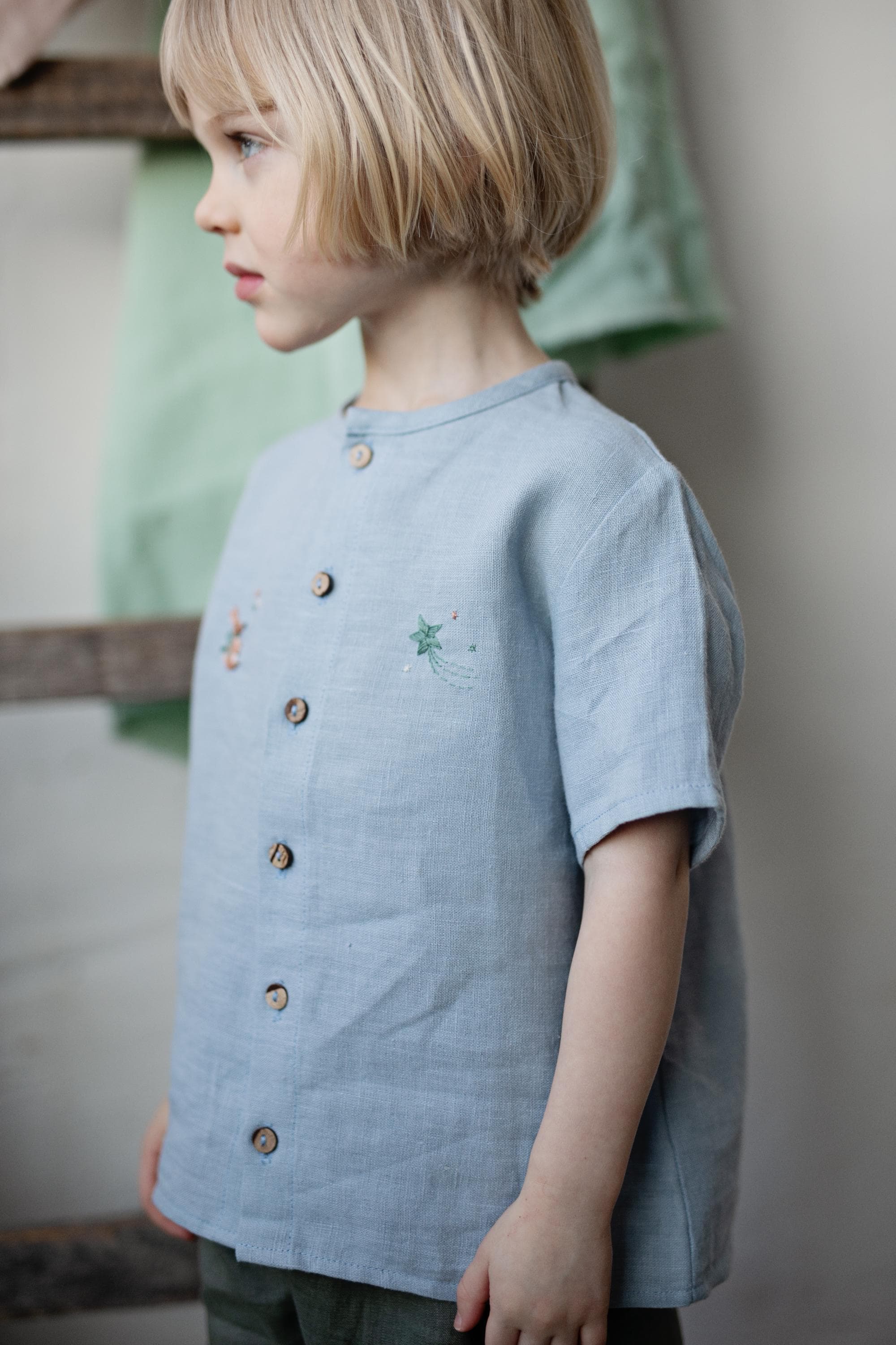 Natural Linen Shirt with Wings