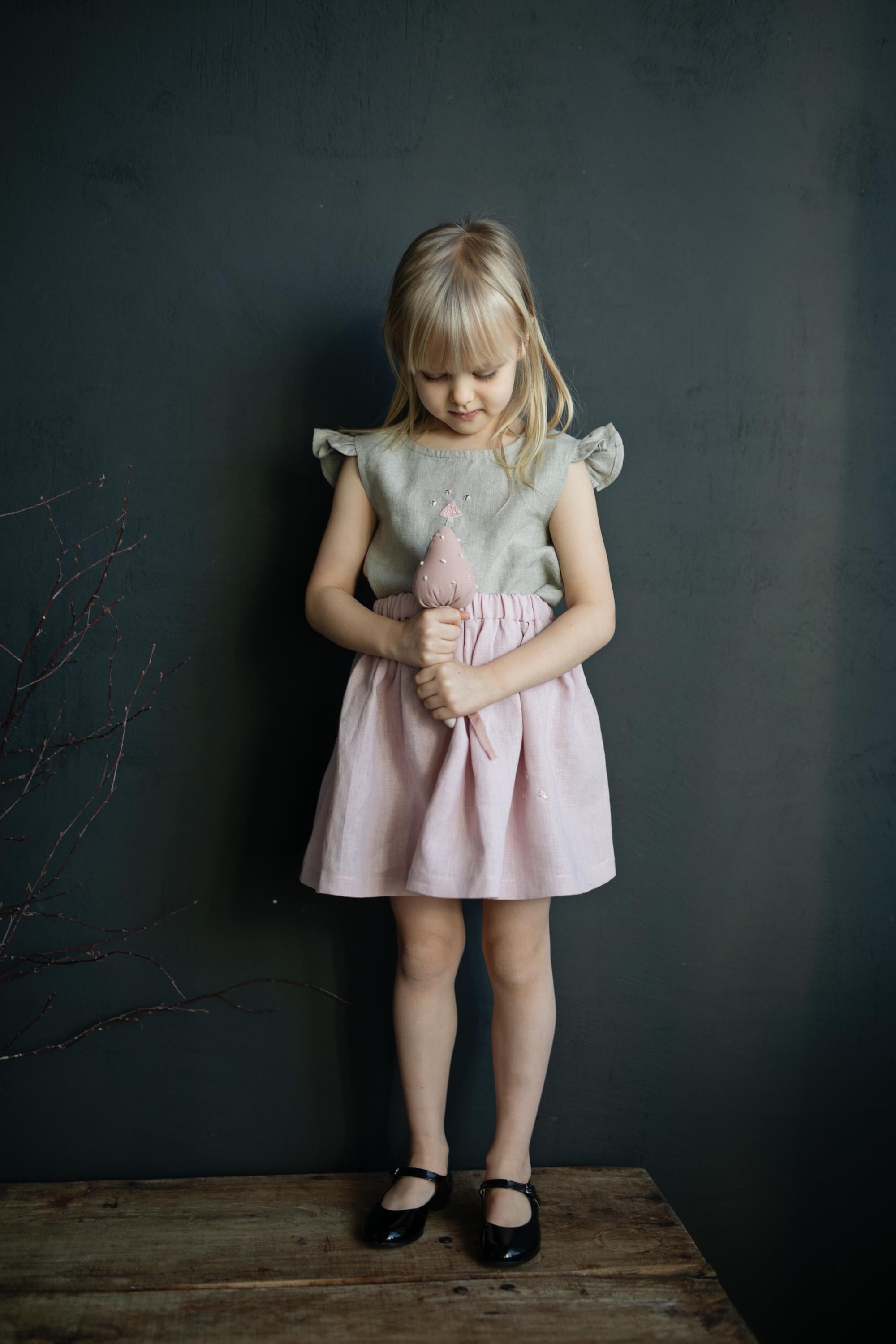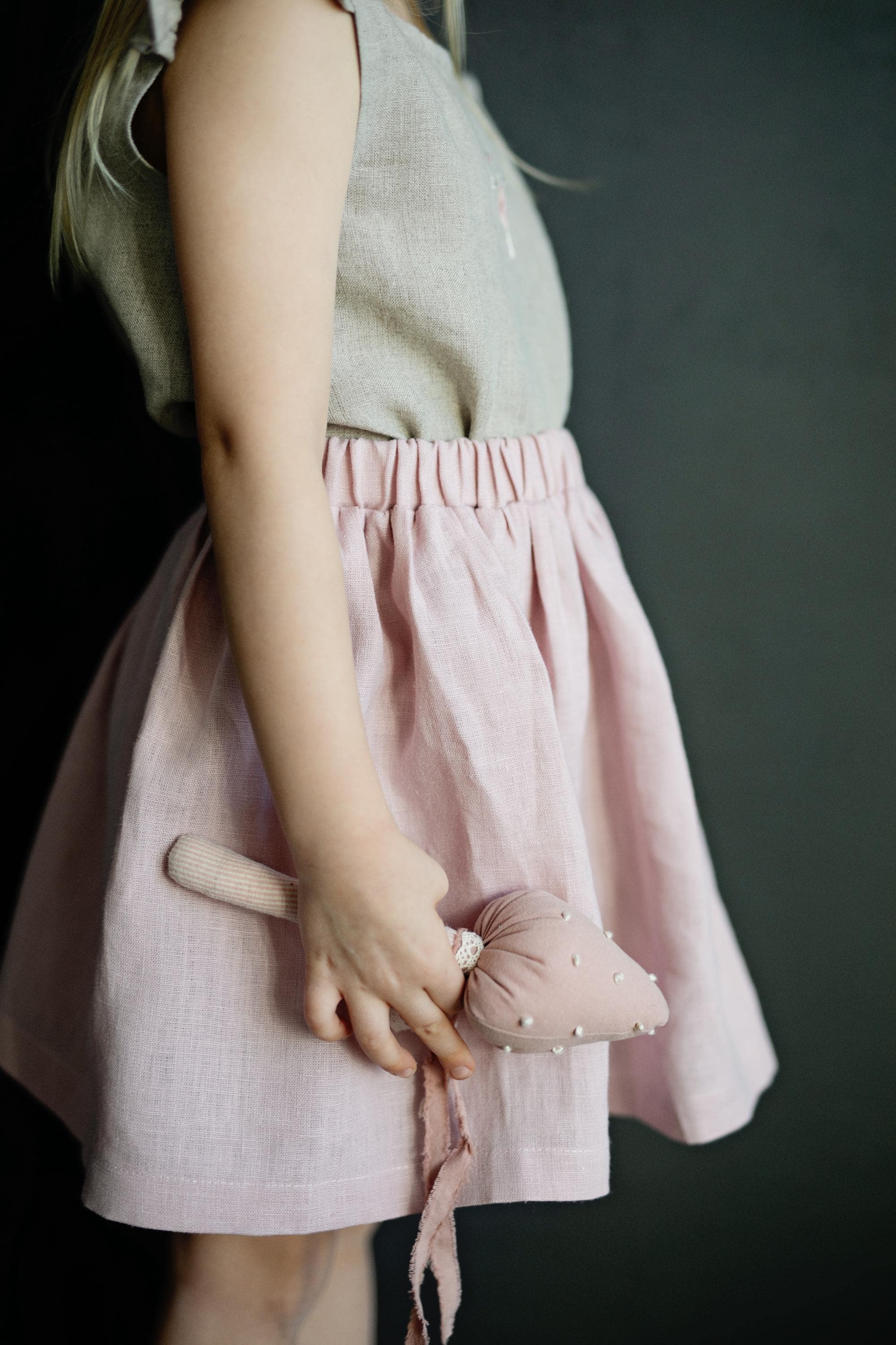 Baby Pink Simple Midi Linen Skirt