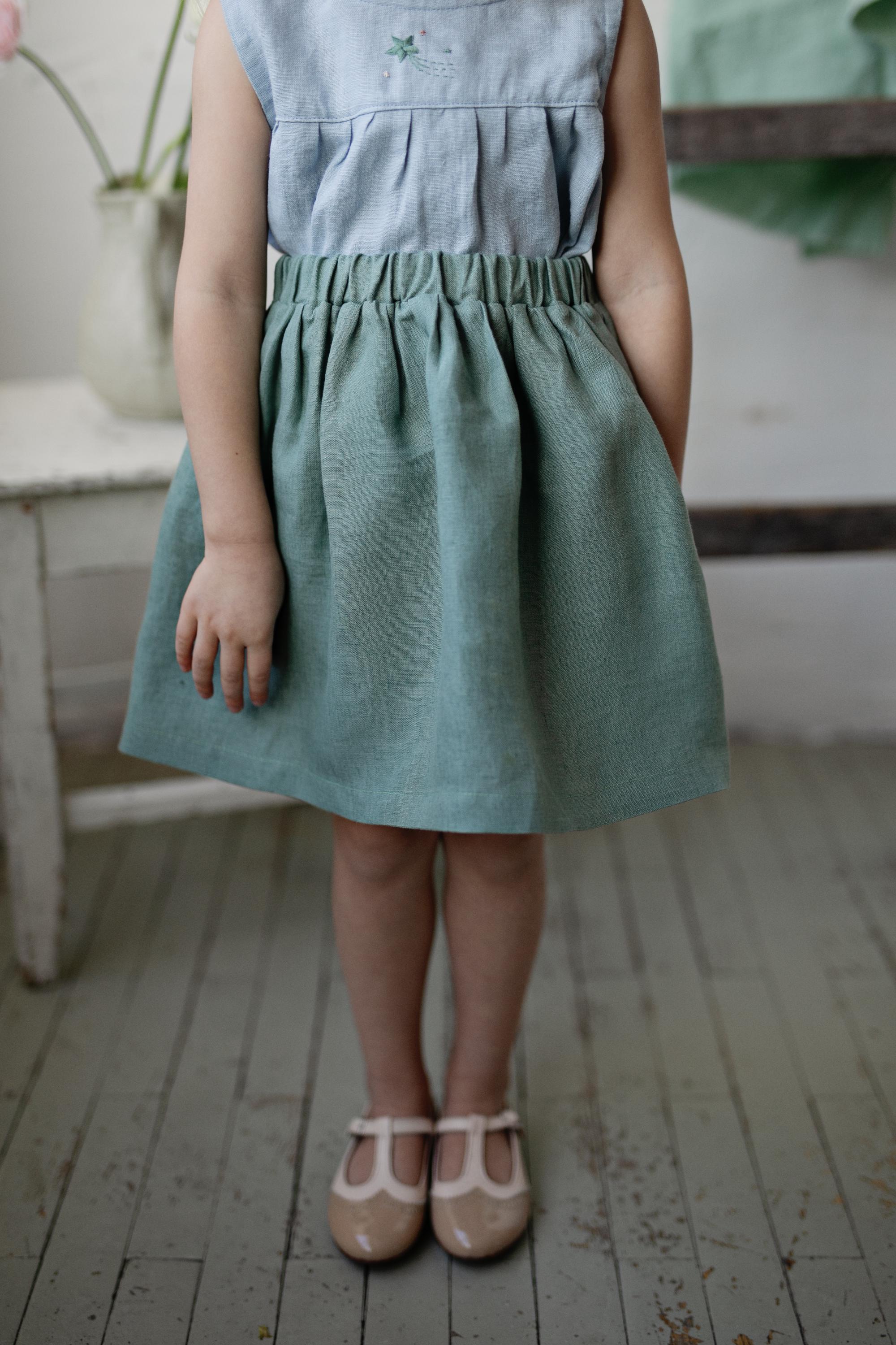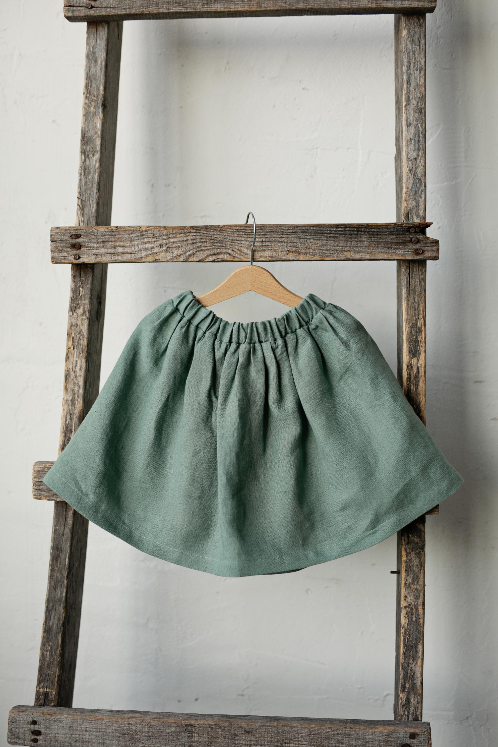 Mint Simple Midi Linen Skirt