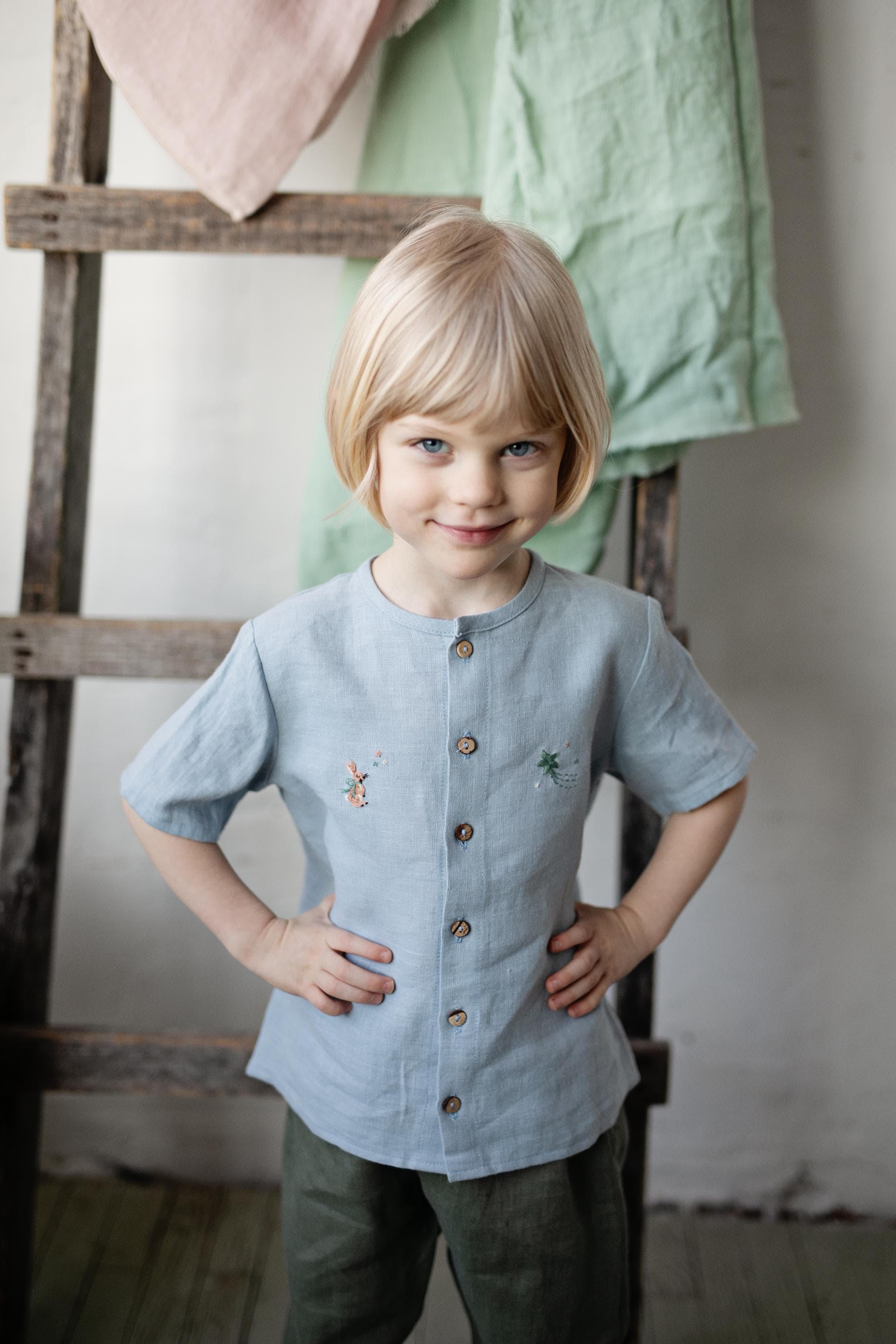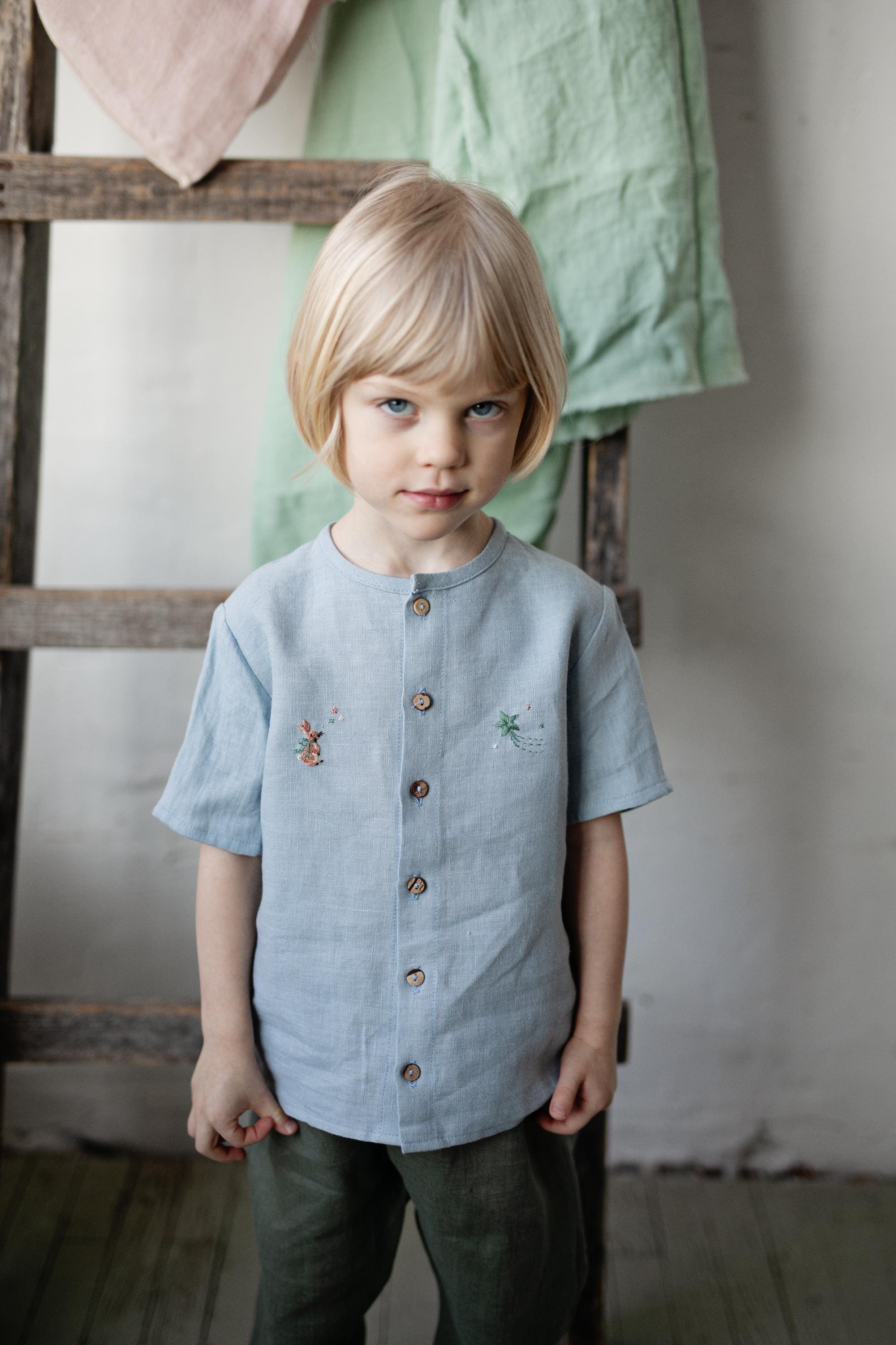 Fog Grey Linen Shirt with Wings