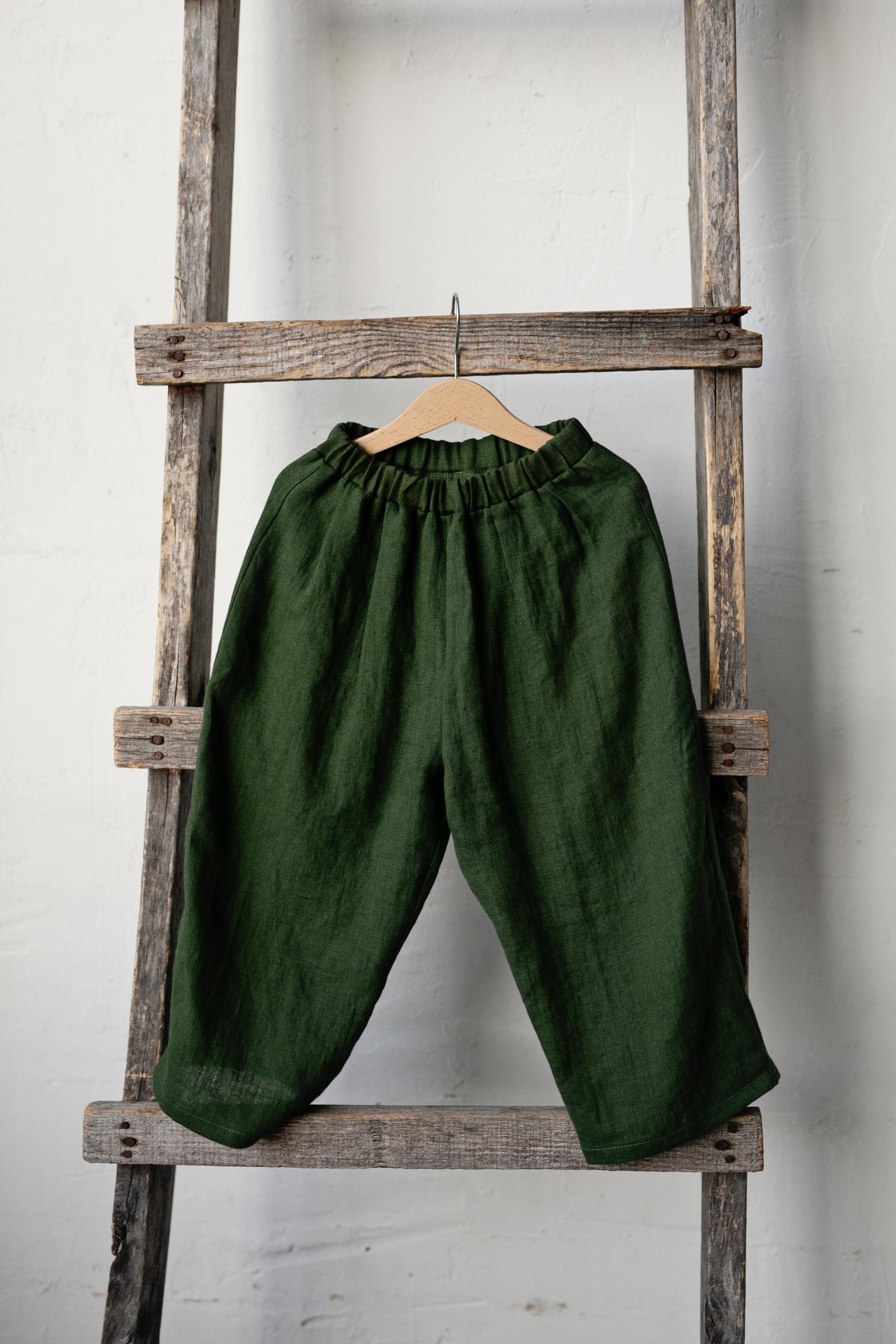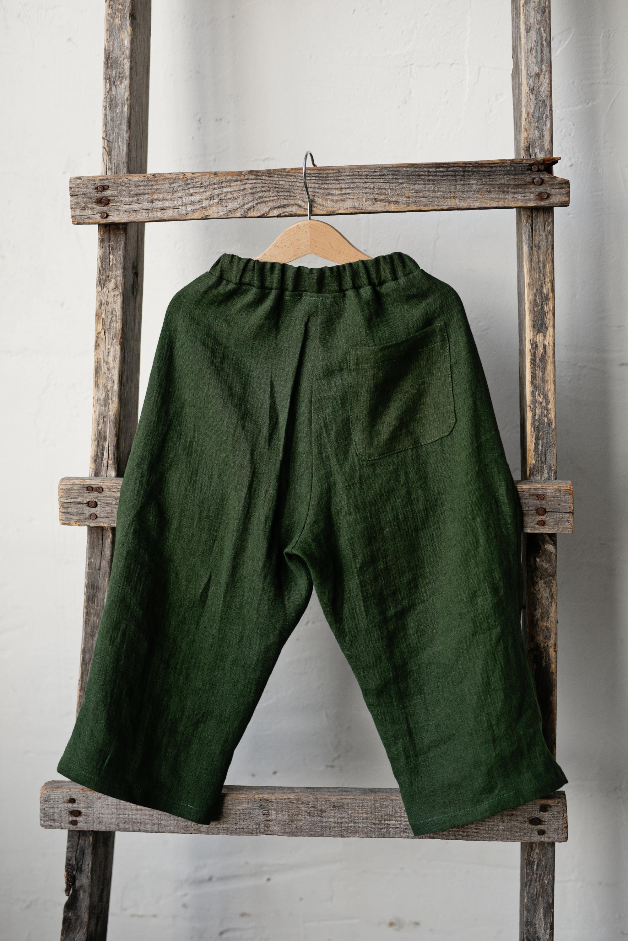 Forest Green Linen Sailor Pants