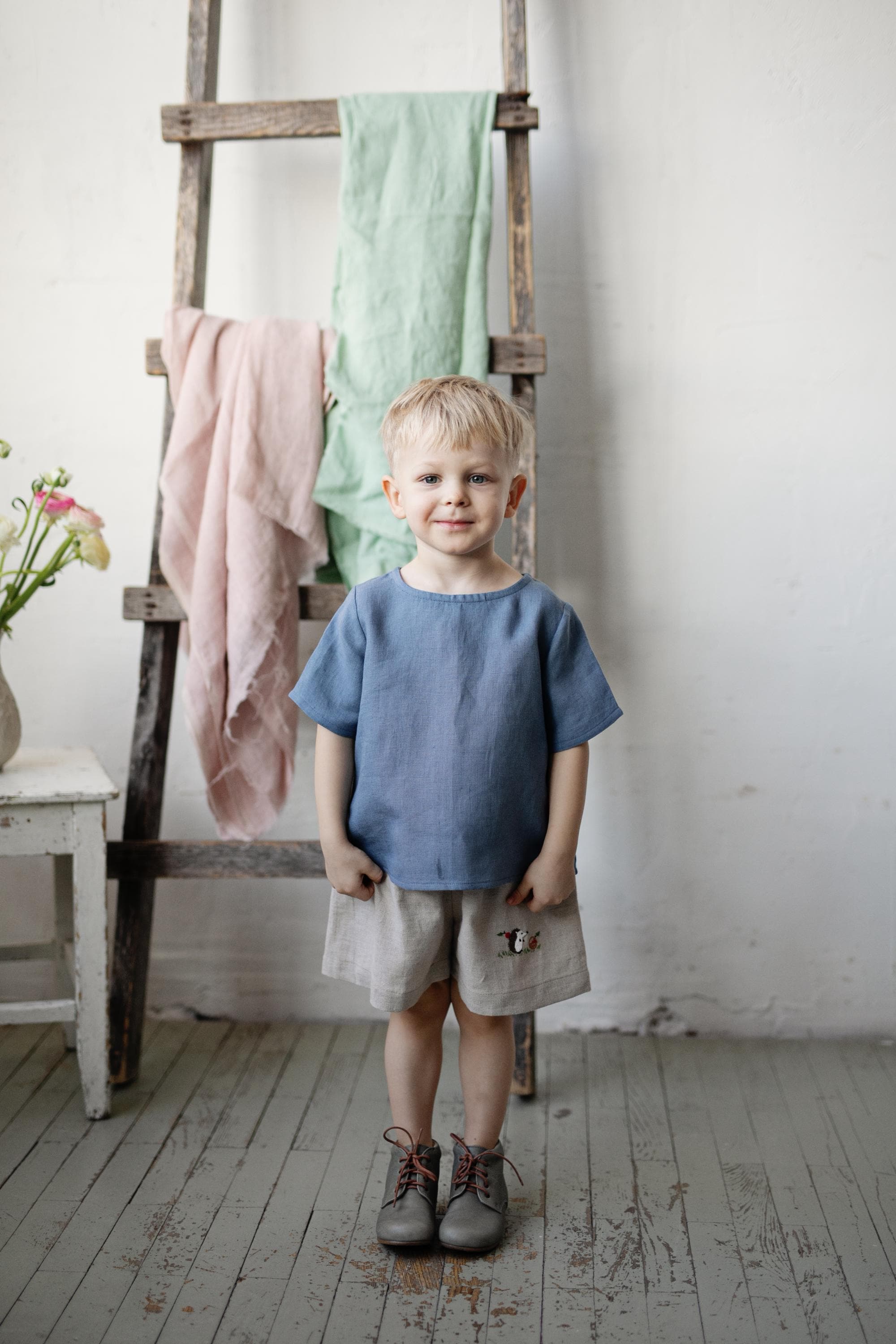 Dusty Blue Linen T-Shirt