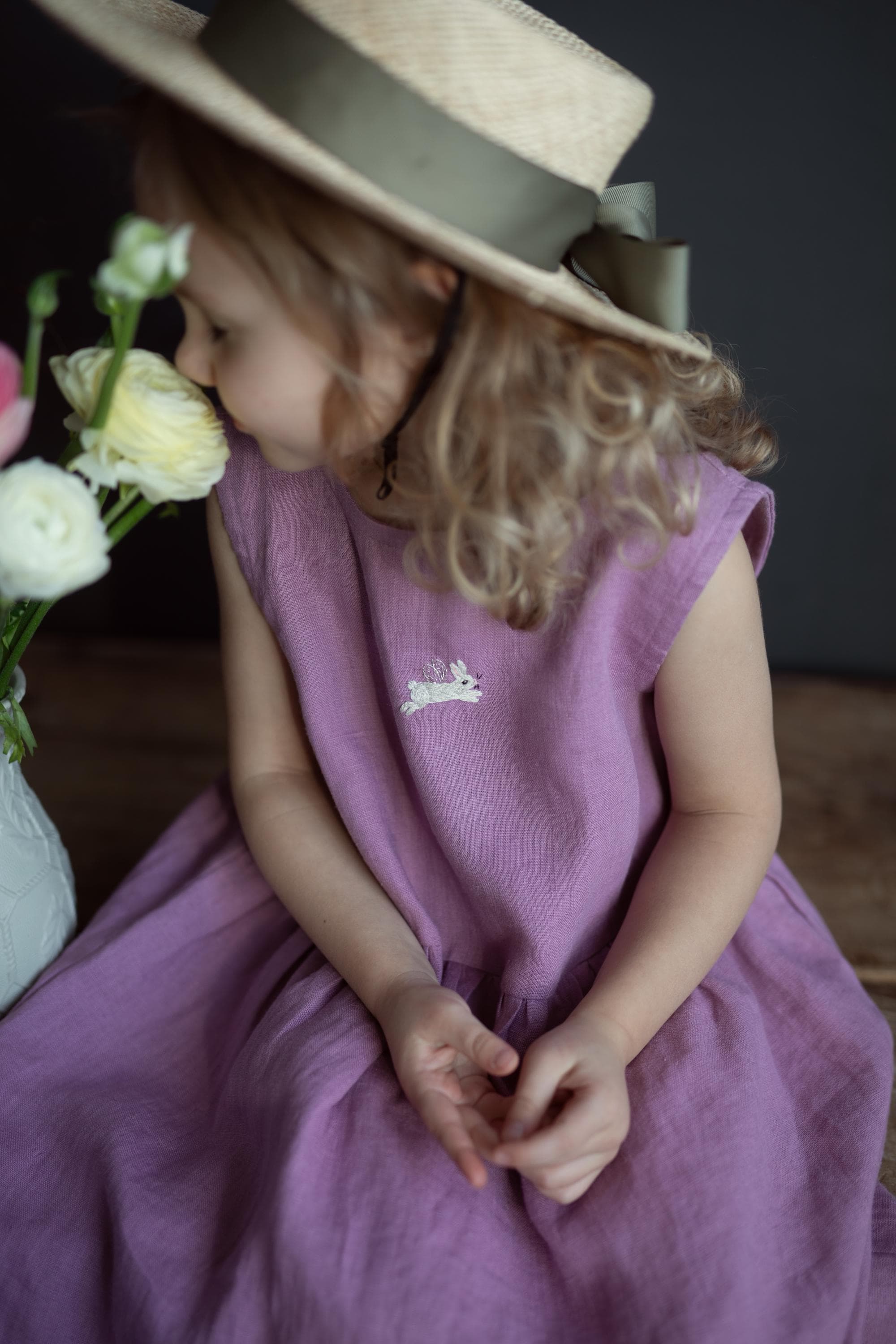 Lilac Linen Smock Dress
