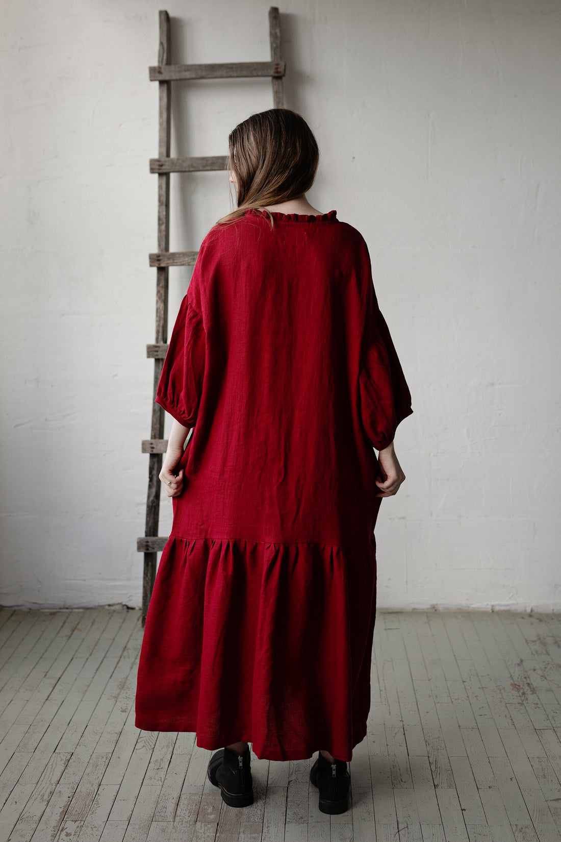 Ruffle kimono dress is made from 100% soft and washed linen.